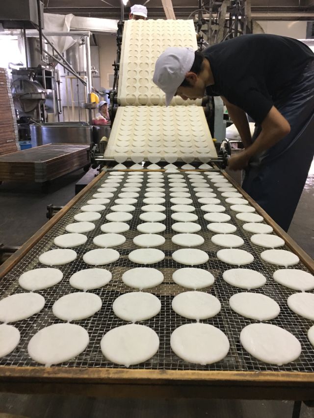 ですので、煎餅製造業務全ての工程(精米→米とぎ→製粉→蒸かし→餅つき→型抜き→乾燥→調湿→予熱→焼き→点検・封入 等)にかかわっていただきます。