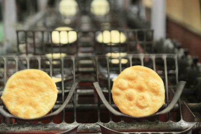 草加煎餅業界は主に「生地」を作る会社と「焼き」をする会社による分業制がとられていますが、弊社では生地から焼きまで全てを一貫生産しております。