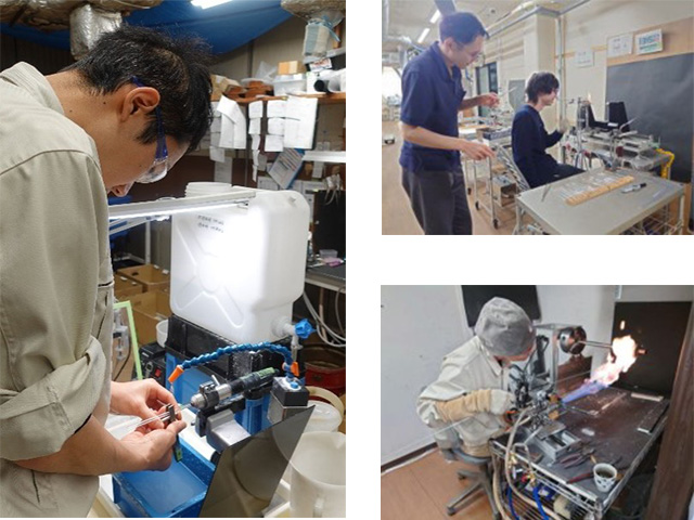世界の科学をリードする最先端の分析装置に私たちのガラス製品は使われています。みんなで力を合わせて多くの注文をこなし、難しい製品を作る。